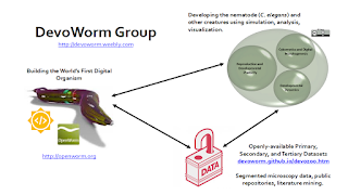 The talk features work with several collaborators, features work from the DevoWorm group. In the talk, I described the DevoWorm group as an example of data science biology [2]. As an affiliate of the OpenWorm Foundation [3], the DevoWorm group works with primary and secondary data, and produces secondary and tertiary open datasets that serve as material for publications, student projects, and the wider development/computational biology communities.