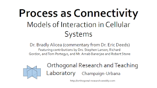 This year was the second installment of FYIM, and this time I was chosen for a platform presentation. The platform presentation (Process as Connectivity: models of interaction in cellular systems) involves a 40-minute discussion between the principal investigator and an expert modeler. For my talk, this expert modeler was Dr. Eric Deeds from the University of Kansas.